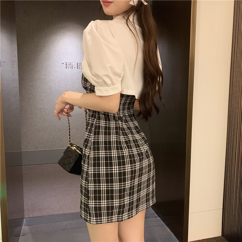 Available in two stunning color combinations: 7053# white shirt and 7054# plaid skirt, you can mix and match to create your perfect ensemble. Choose from sizes S, M, L, and XL to find your ideal fit.