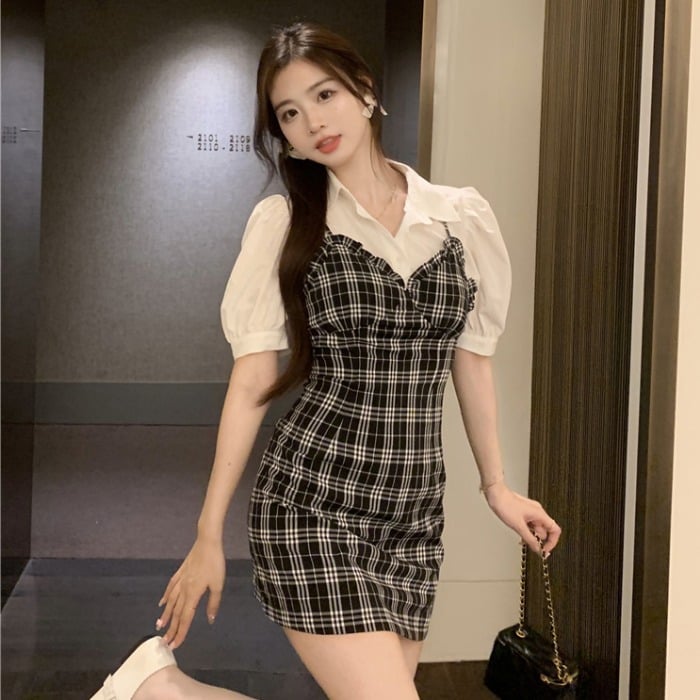 Featuring a sleeveless design and a flattering hip skirt silhouette, this outfit is ideal for daily commuting, casual outings, or even a night out on the town. The pullover style ensures easy wear, while the unique plaid pattern adds a touch of elegance to your look.